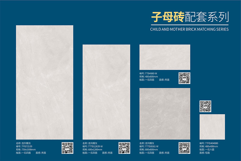 子母配套:TPB71539 (750x1500mm)、TTB8581-W(800x800mm)、TTB4880-W(400x800mm)、TFB404080(400x400mm)